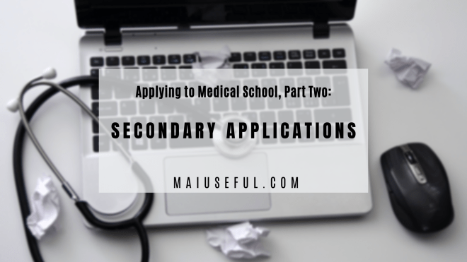 2. almost every medical school you apply to requires a separate secondary application. Yes, this means you will be paying an additional of anywhere from $40-100 for EACH medical school you applied to in your primary application to which you want to continue applying.3. this is optional for the schools that you want a rejection letter from.4. this is required for the schools that you want to an acceptance letter from.5. lots of busy work.6. comes in the form of essays, video submissions, and/or an online, proctored examination. Yes, you read that correctly. Proctored examination.7. an application that may cause side effects, such as headaches, nausea, confusion, eye bags, sleeplessness, fatigue, writer’s block, anxiety, sadness, an empty bank accountsynonyms: supplemental application, an application that makes you question your career, it’s OK – just focus on the process